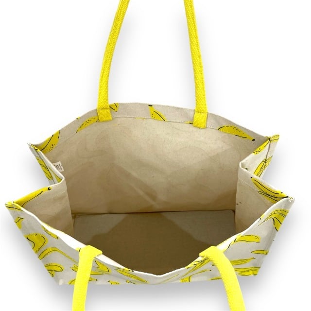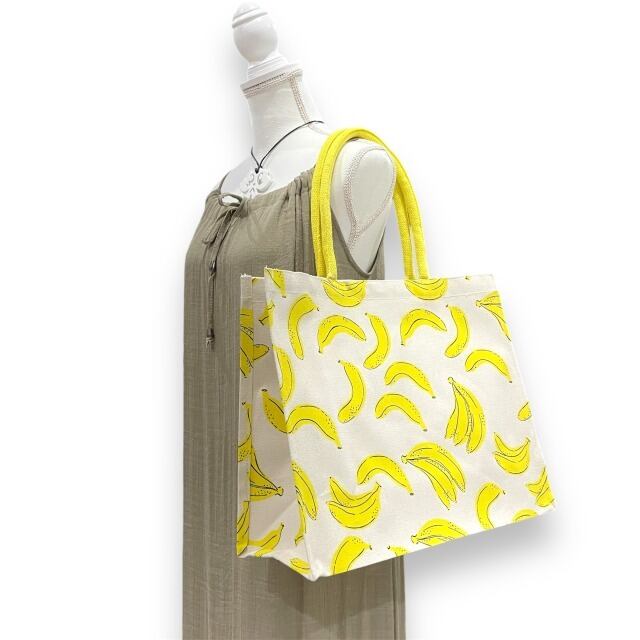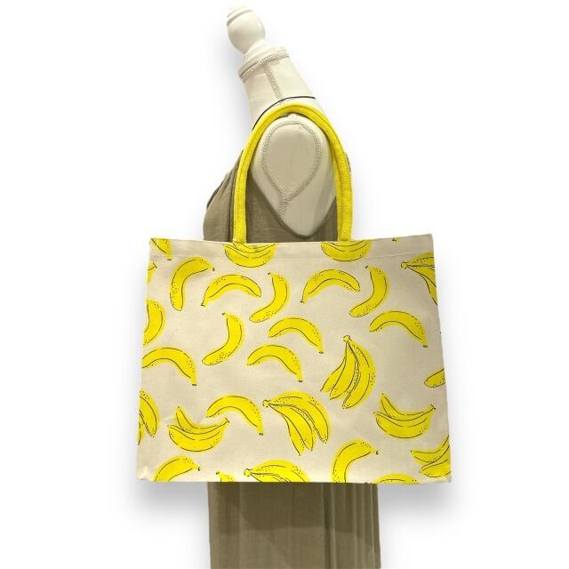 【ECCOLO】キャンバスショッパートート トートバッグ バナナ バナナ柄 イエロー アイボリー マチあり 底板付き お出かけ ショッピング レッスン 通勤通学 ハワイ 海外品 海外輸入