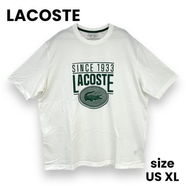 【LACOSTE】ラコステ Tシャツ メンズ トップス アメリカンサイズ XLサイズ ホワイト グリーン ロゴ 半袖 父の日 プレゼント ギフト 海外品 海外輸入 ファッション 100%コットン