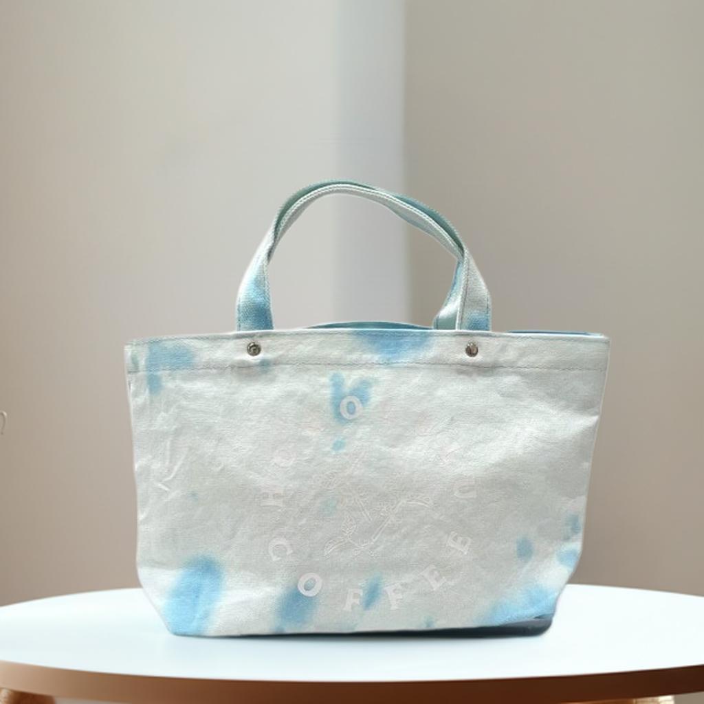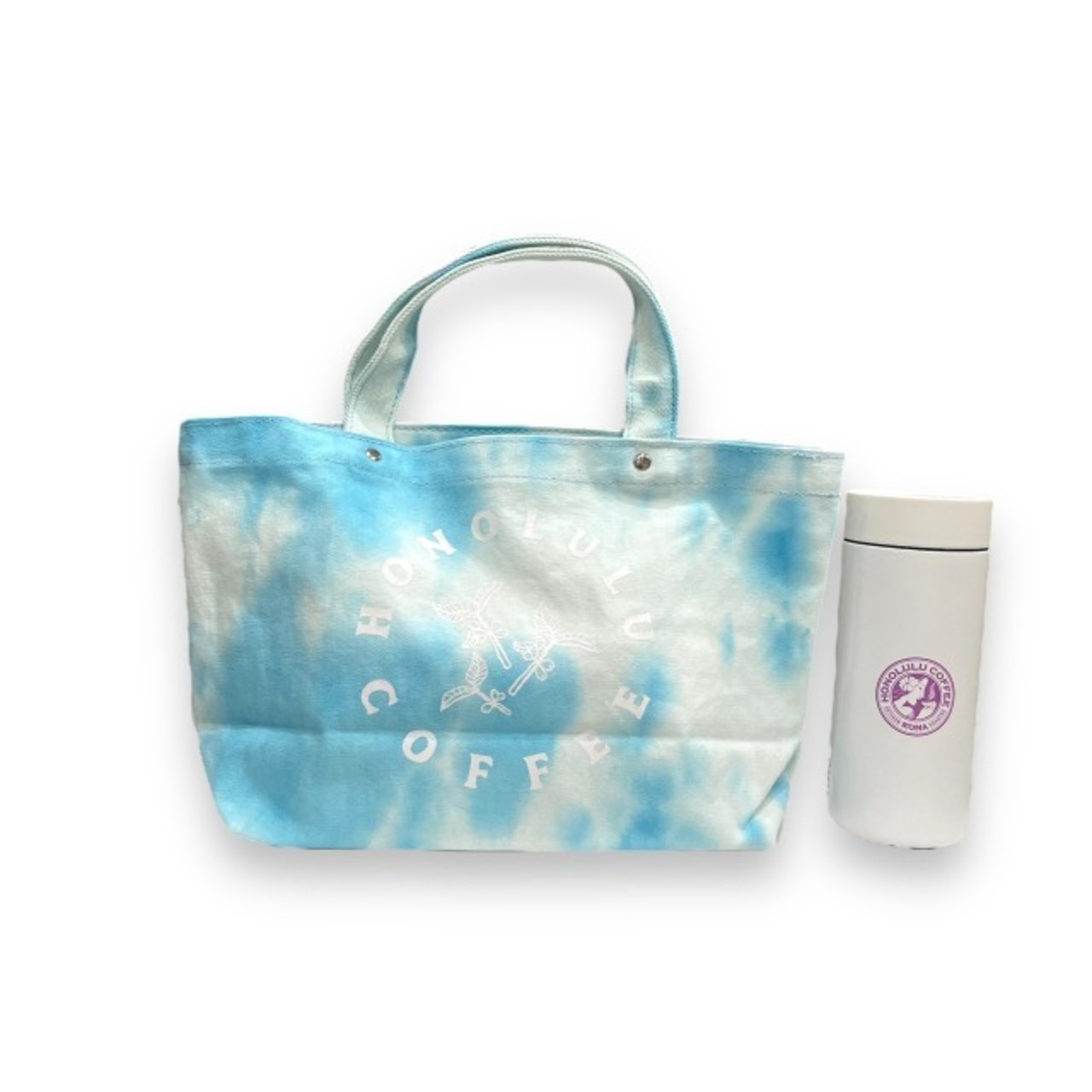 【HONOLULU COFFEE】ホノルルコーヒー キャンバスミニトート トートバッグ 小さめ ミニ ホワイト ブルー タイダイ染め タイダイ ロゴ ハワイ HAWAII ハワイ入荷 海外商品 ランチ トート ギフト プレゼント