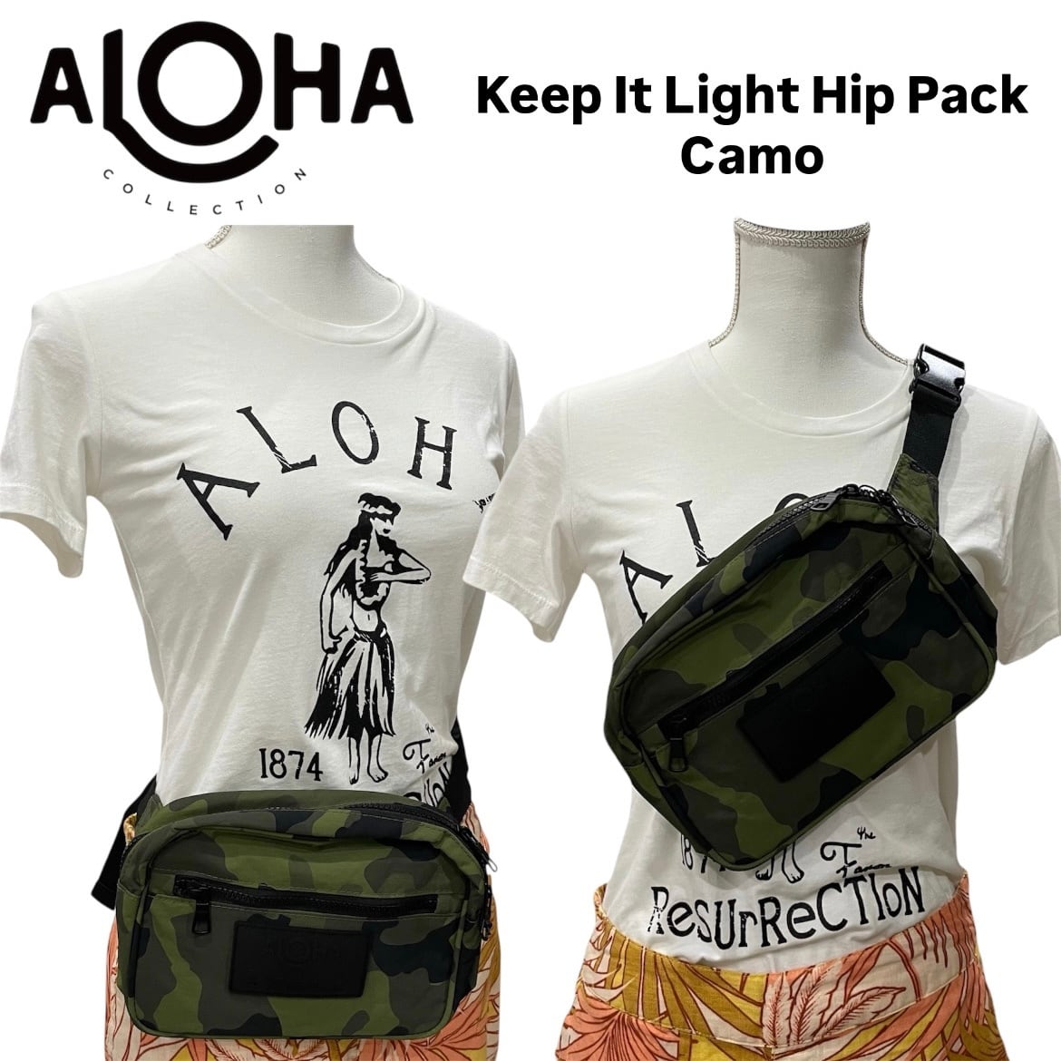 【ALOHA COLLECTION】アロハコレクション KEEP IT LIGHT HIP PACK カモフラージュ カモ 迷彩 グリーン カーキ カーキグリーン ブラック ウエストポーチ ボディバッグ 2way 軽量 メンズ レディース ユニセックス アウトドア スポーツ お出かけ プレゼント