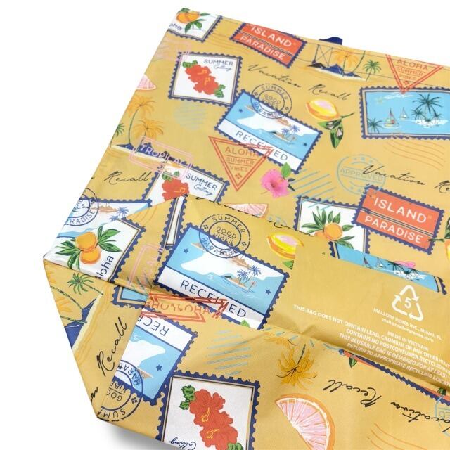 【エコバッグ】ポリプロリレン ベージュ マルチカラー ハワイアン ハワイアンデザイン 大きめ マチあり HAWAII 海外品 海外品 輸入雑貨