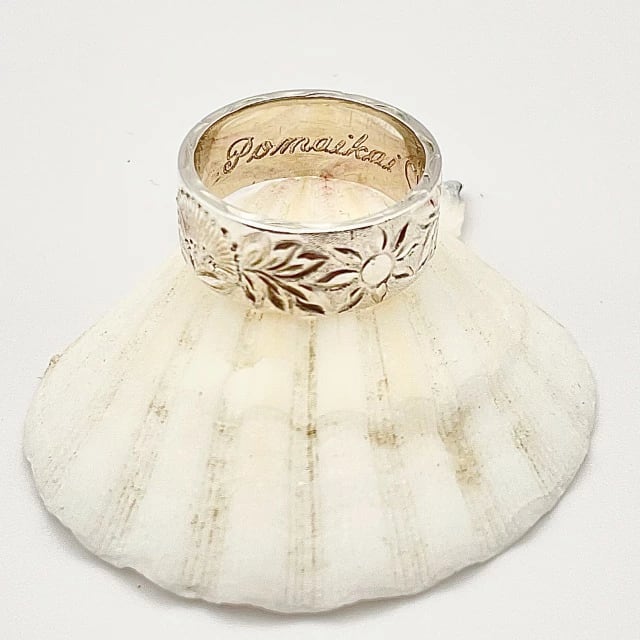 【ハワイアンジュエリー】HAWAIIAN JEWELRY RING リング 指輪 シルバー ハワイ製 職人 レフア ヤシ 太陽 Aloha 8mm幅 厚さ 1.5mm フラット ウェディング 婚約 記念日 ペアリング レディース アクセサリー ジュエリー プレゼントmu