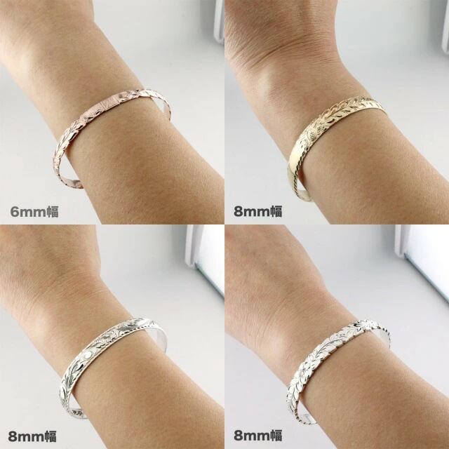 【ハワイアンジュエリー】HAWAIIAN JEWELRY バングル BANGLE シルバー ハワイ製 職人手彫り ヤシ マウナケア レフア イプ ウリウリ ウクレレ パフ 10mm幅 厚さ 1.5mm フラット ウェディング 婚約 レディース メンズ アクセサリー ジュエリー クリスマスプレゼント mu